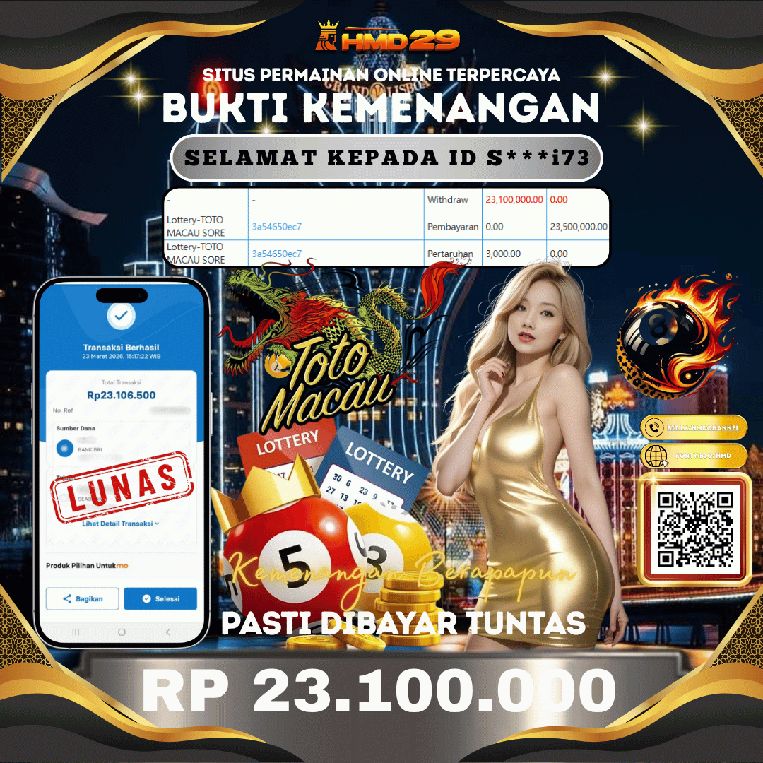 HMD29 JACKPOT TOGEL TOTOMACAU. 23,100,000,-