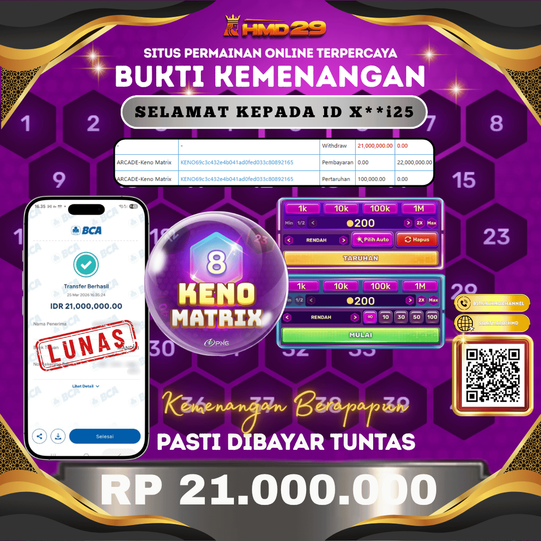 HMD29 JACKPOT ARCADE KENO MATRIX. 21,000,000,-