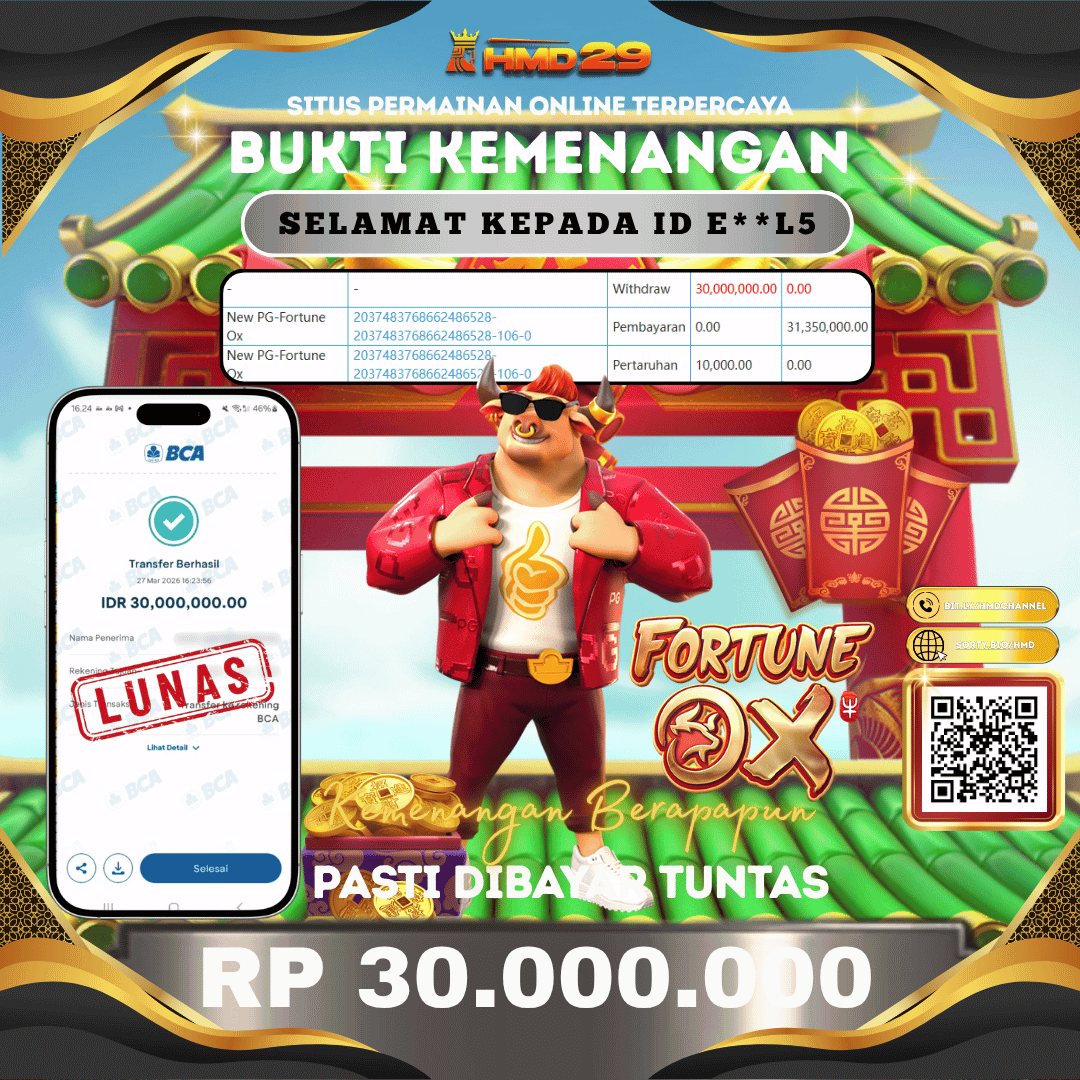 HMD29 JACKPOT SLOTGAME FORTUNE OX. 30,000,000,-