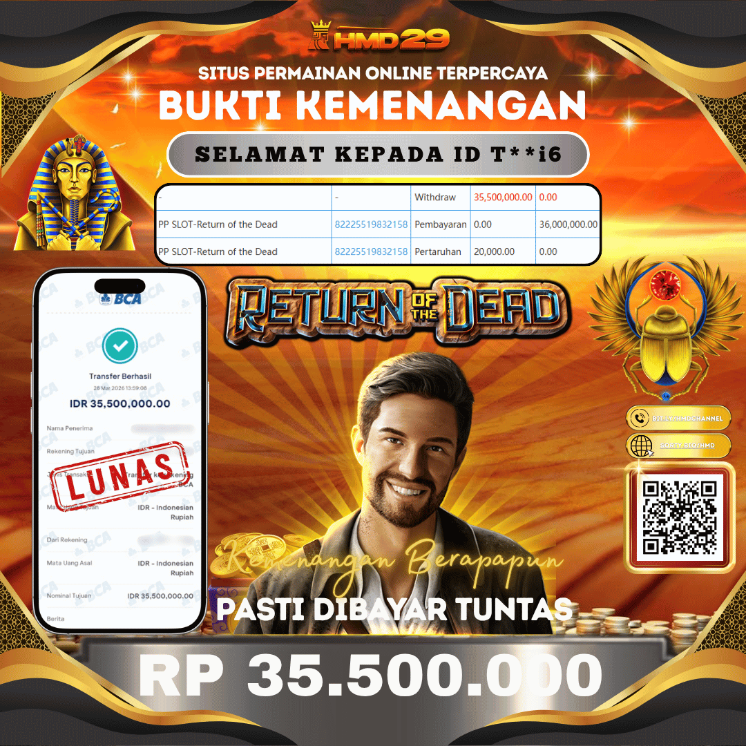 Selamat kepada User id : Z***N44 Telah berhasil mendapatkan kemenangan besar pada permainan SLOT GAME Kemenangan sebesar RP 28,000,000,-JP BERAPAPUN TETAP KAMI BAYAR !!! HMD29 didirikan dengan prinsip fairplay dan kejujuran karena kenyamanan dan keamanan member adalah prioritas utama HMD29. segera bergabung bersama kami dan dapatkan pengalaman bermain judi terbaik. Hanya di HMD29 bisa dengan mudah memenangkan hadiah hingga ratusan juta rupiah. AYO SEGERA DAFTARKAN DIRI ANDA DI HMD29 dengan minimal deposit Rp.10.000.- & minimal withdraw Rp.10.000. Terima kasih kepada pemenang karena sudah mempercayakan kami sebagai gamebling terpercaya yang membayar semua kemenangan member