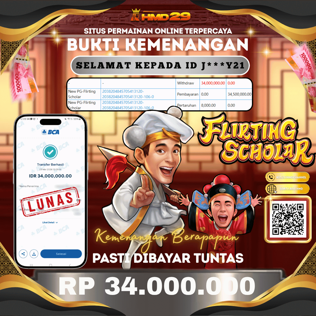 Selamat kepada User id : J***Y21 Telah berhasil mendapatkan kemenangan besar pada permainan SLOTGAME Kemenangan sebesar RP 34,000,000,-JP BERAPAPUN TETAP KAMI BAYAR !!! HMD29 didirikan dengan prinsip fairplay dan kejujuran karena kenyamanan dan keamanan member adalah prioritas utama HMD29. segera bergabung bersama kami dan dapatkan pengalaman bermain judi terbaik. Hanya di HMD29 bisa dengan mudah memenangkan hadiah hingga ratusan juta rupiah. AYO SEGERA DAFTARKAN DIRI ANDA DI HMD29 dengan minimal deposit Rp.10.000.- & minimal withdraw Rp.10.000. Terima kasih kepada pemenang karena sudah mempercayakan kami sebagai gamebling terpercaya yang membayar semua kemenangan member