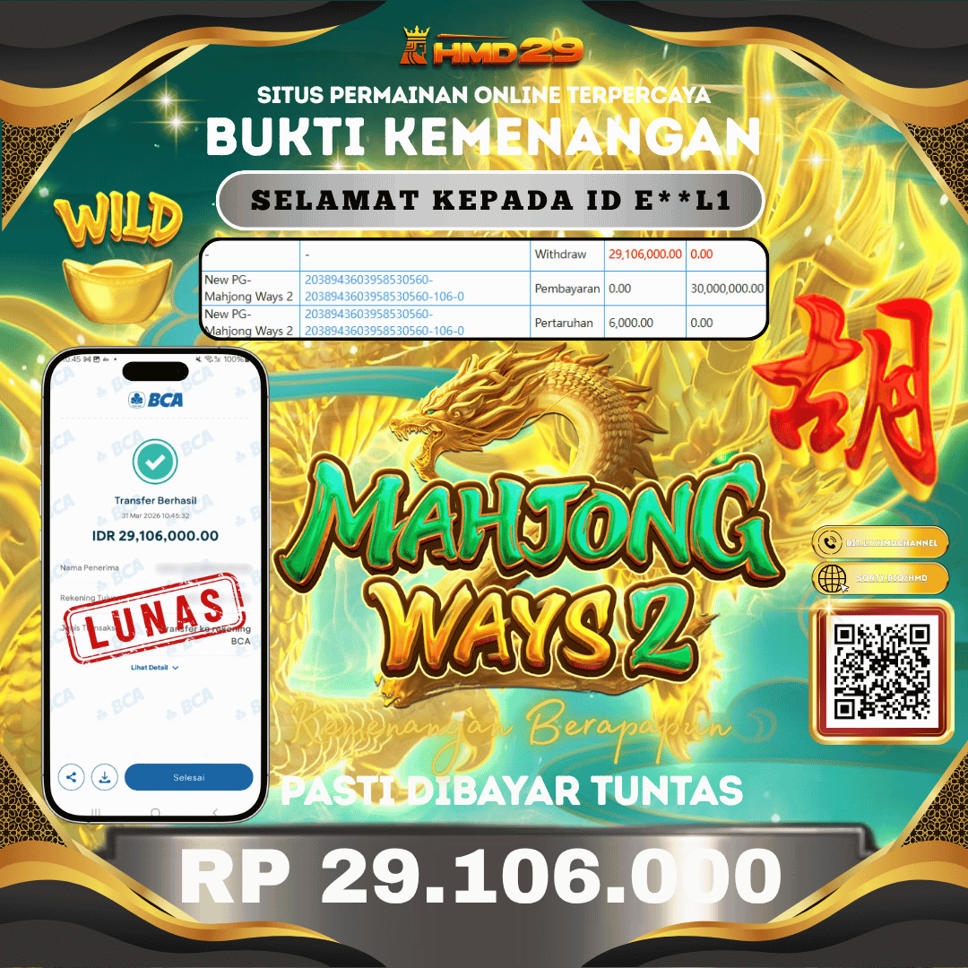 HMD29 JACKPOT SLOTGAME MAHJONG WAYS 2. 29,106,000,-