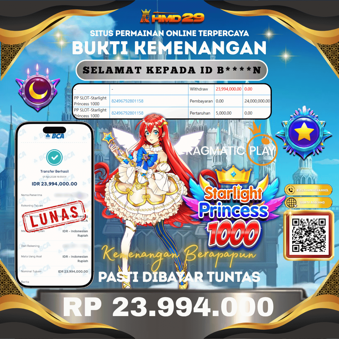 HMD29 JACKPOT SLOTGAME STARLIGHT PRINCESS 1000. 23,994,000,-