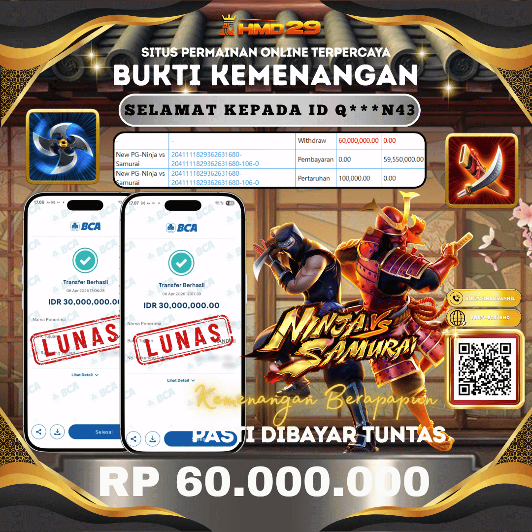 HMD29 JACKPOT SLOTGAME NINJA VS SAMURAI. 60,000,000,-