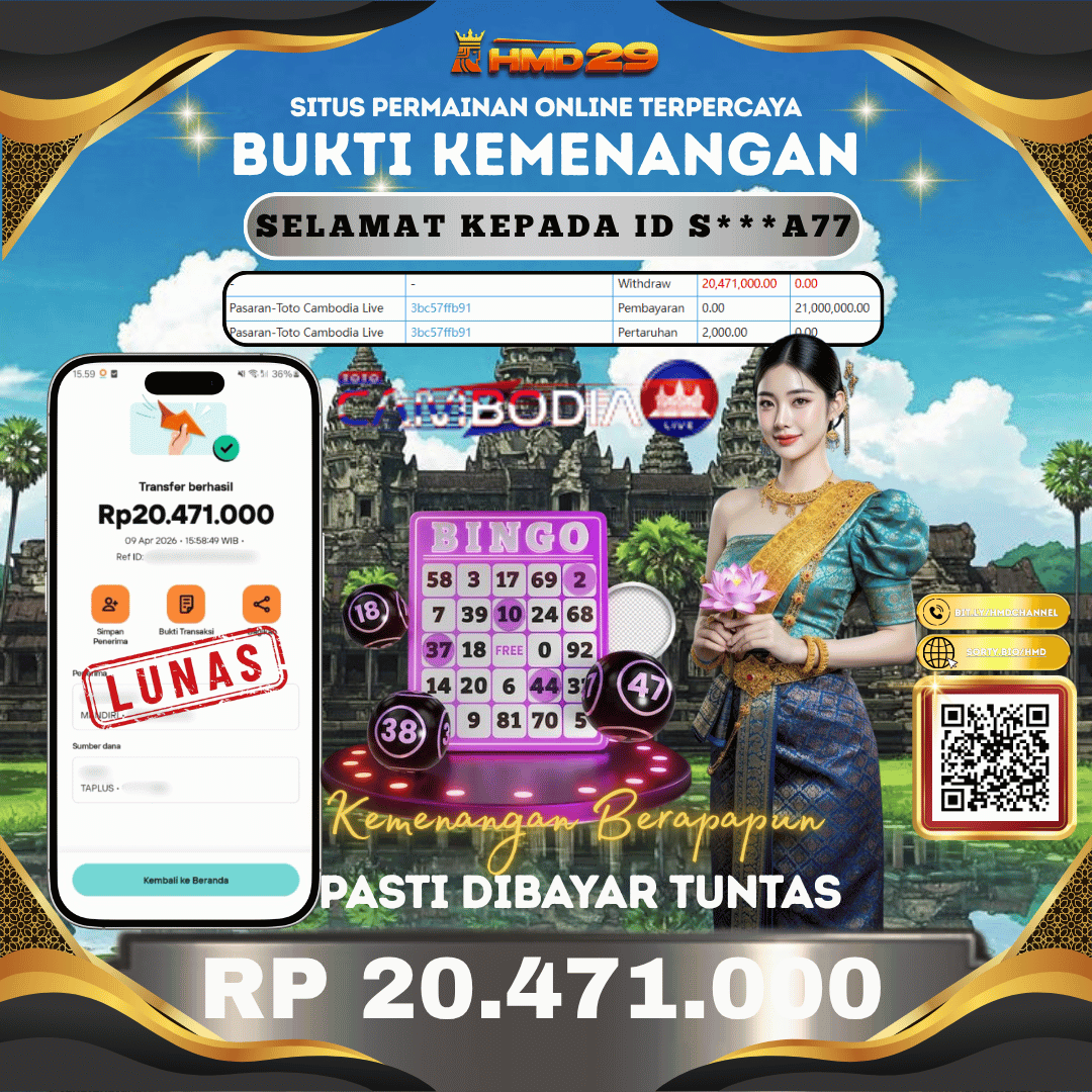 HMD29 JACKPOT TOGEL TOTO CAMBODIA LIVE. 20,471,000,-