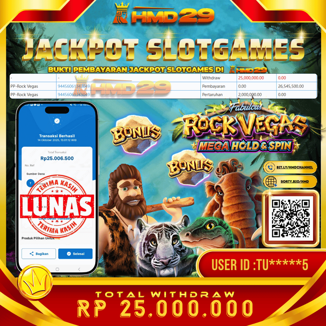 HMD29 JACKPOT SLOT ROCK VEGAS RP 25,000,000 ,-