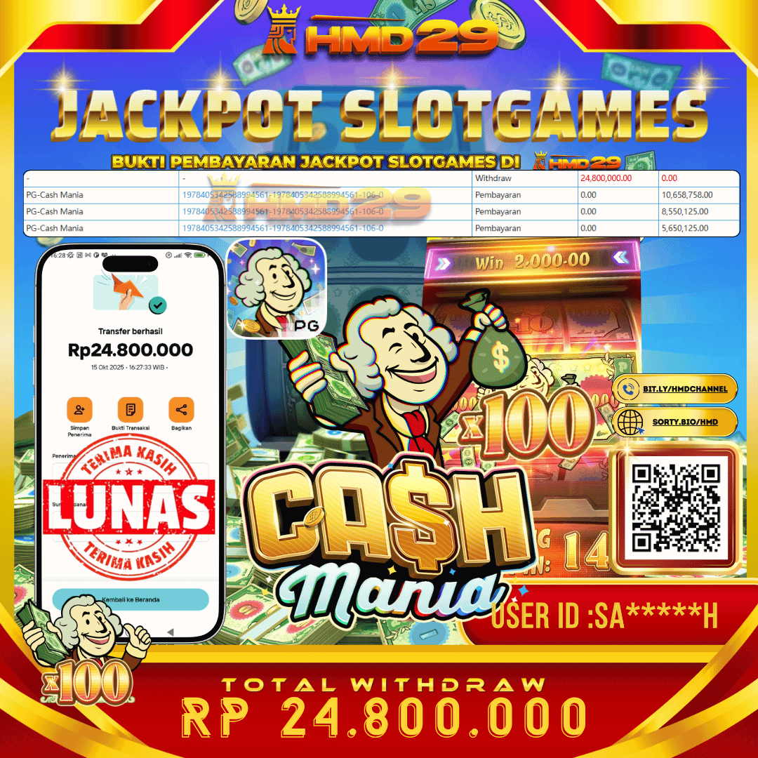 HMD29 JACKPOT SLOT CASH MANIA RP 24,800,000 ,-
