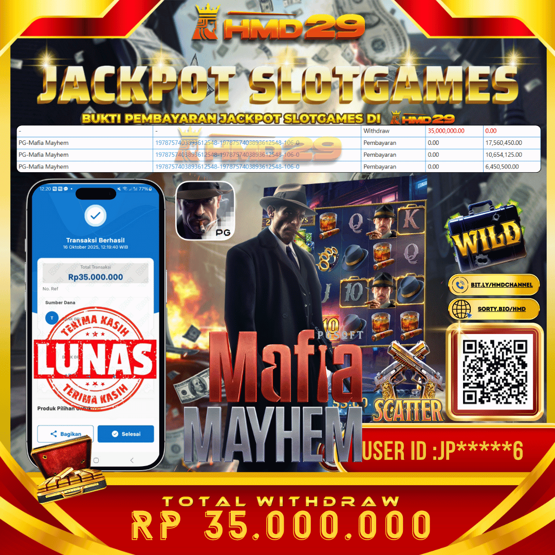 HMD29 JACKPOT SLOT MAFIA MAHYEM RP 35,000,000 ,-