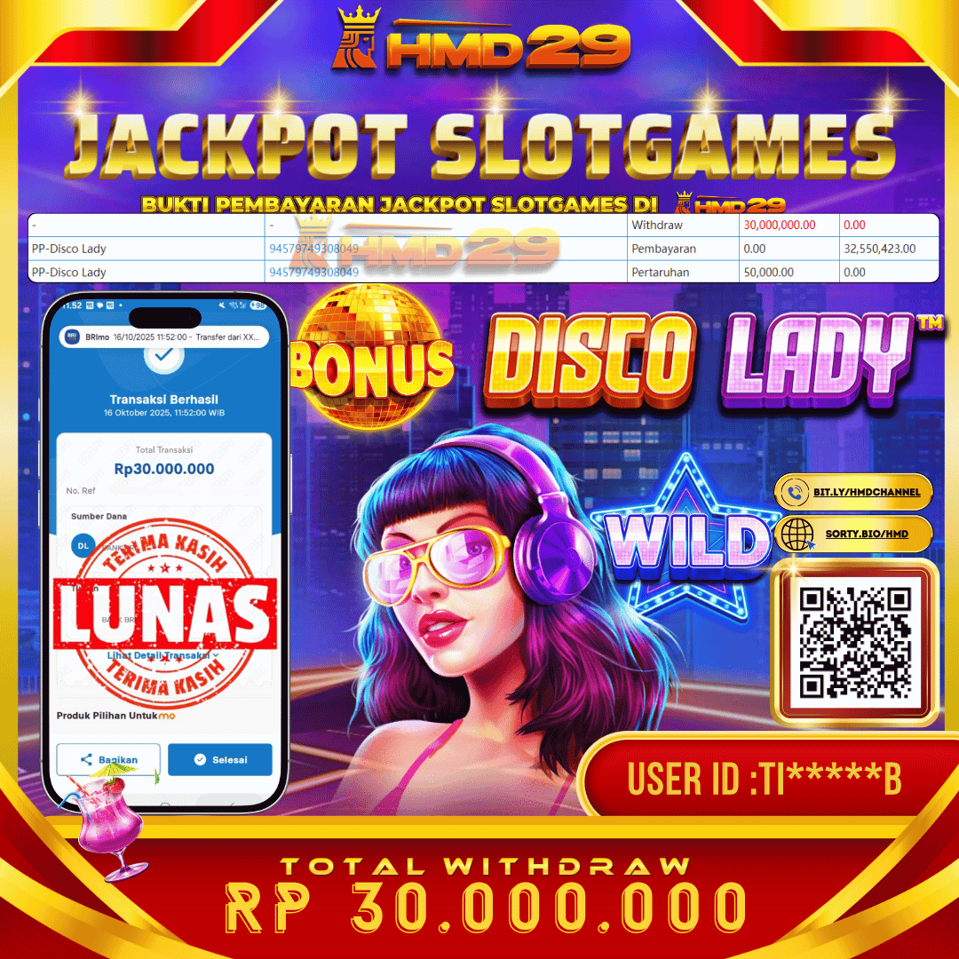 HMD29 JACKPOT SLOT DISCO LADY RP 30,000,000 ,-