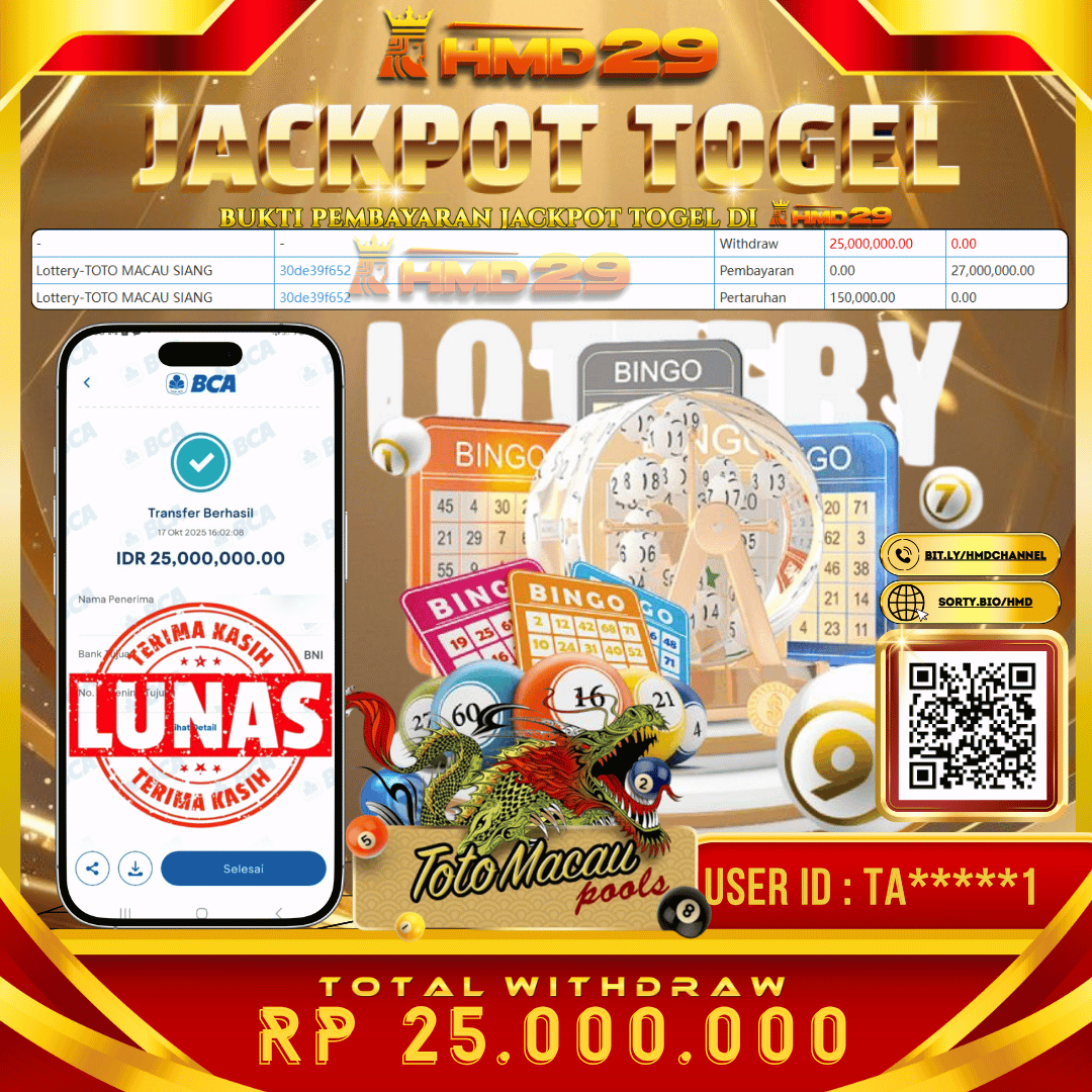HMD29 JACKPOT TOGEL TOTO MACAU RP 25,000,000 ,-