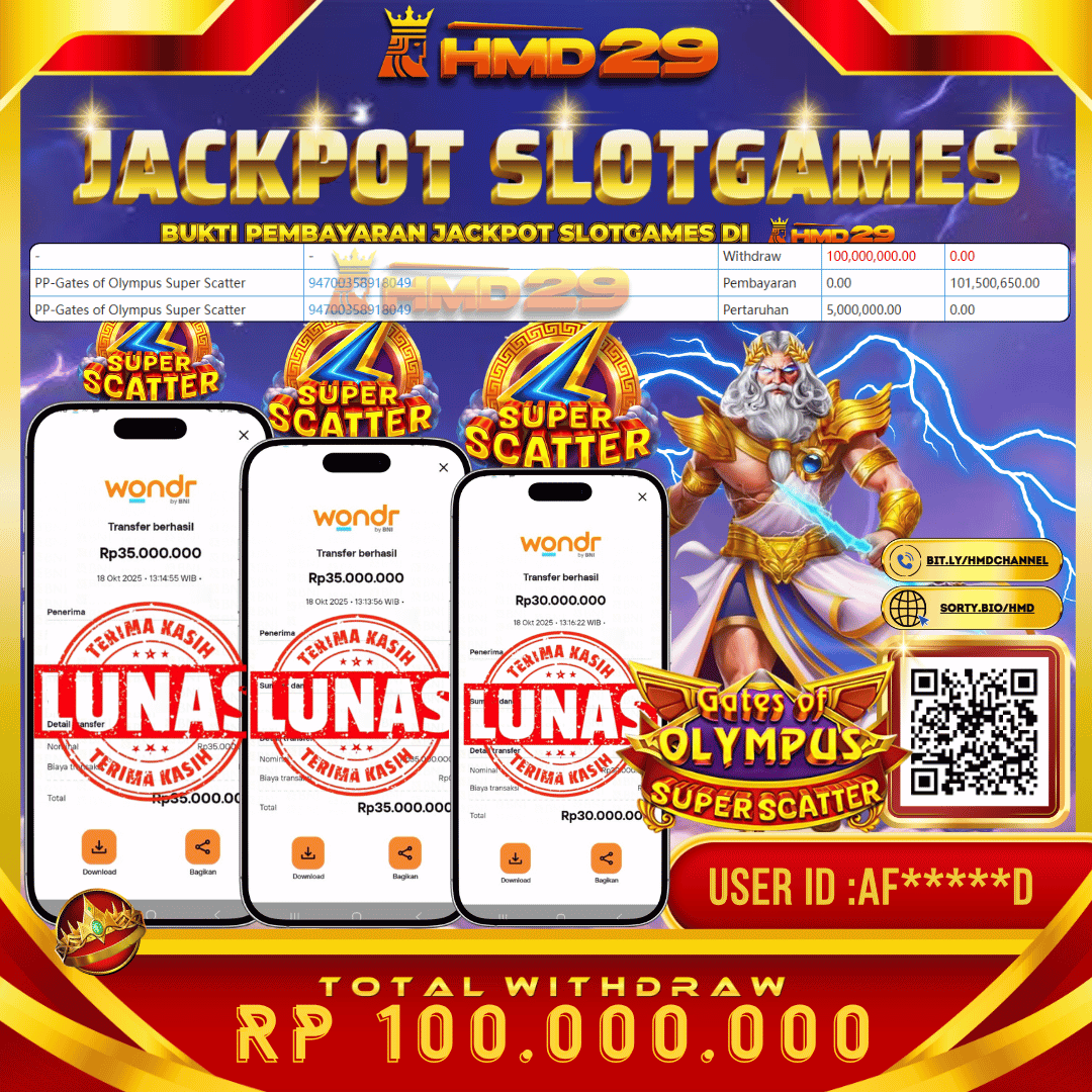 HMD29 JACKPOT SLOT GATES OLYMPUS SUPER SCATER RP 100,000,000 ,-