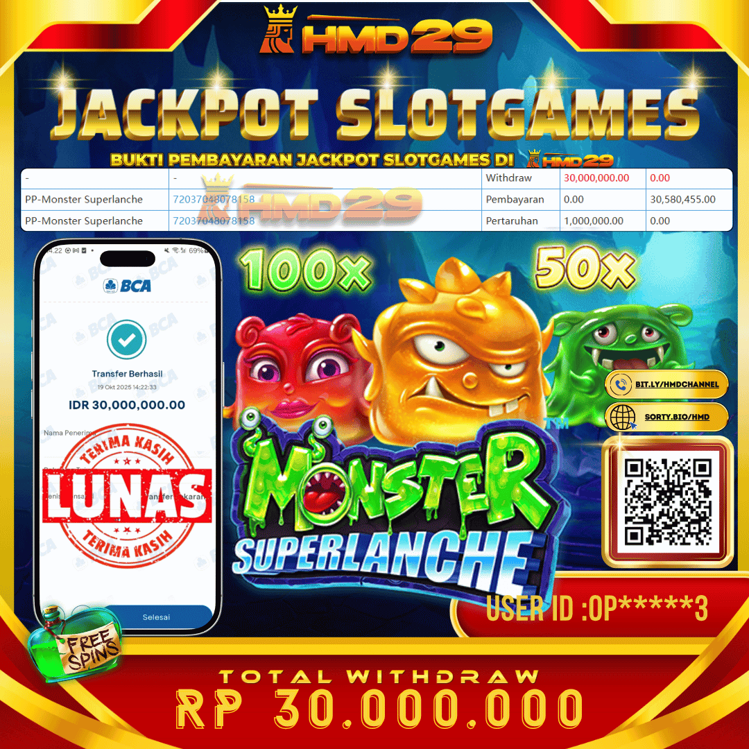 HMD29 JACKPOT SLOT MONSTER SUPERLANCHE RP 30,000,000 ,-