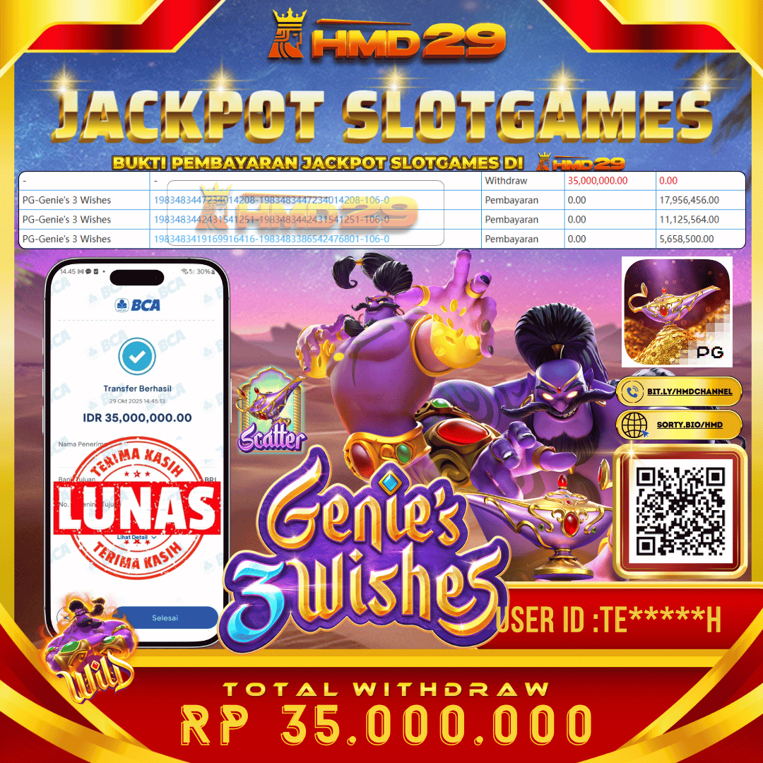 HMD29 JACKPOT SLOT GENIES 3 WISHES RP 35,000,000 ,-