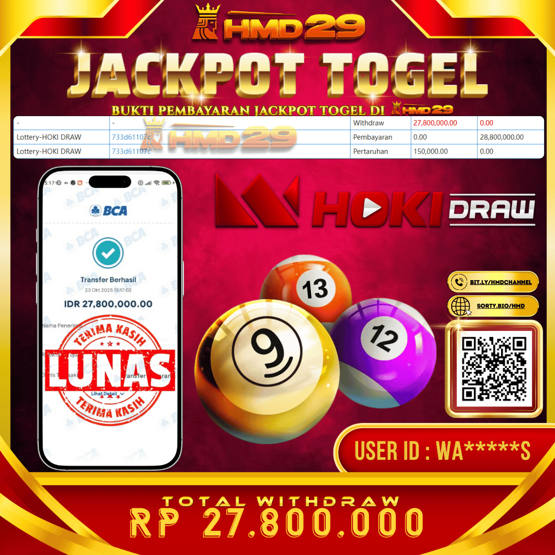 HMD29 JACKPOT TOGEL HOKIDRAW RP 27,800,000 ,-