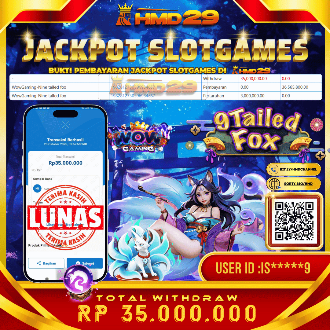 HMD29 JACKPOT SLOT 9 TAILED FOX RP 35,000,000 ,-