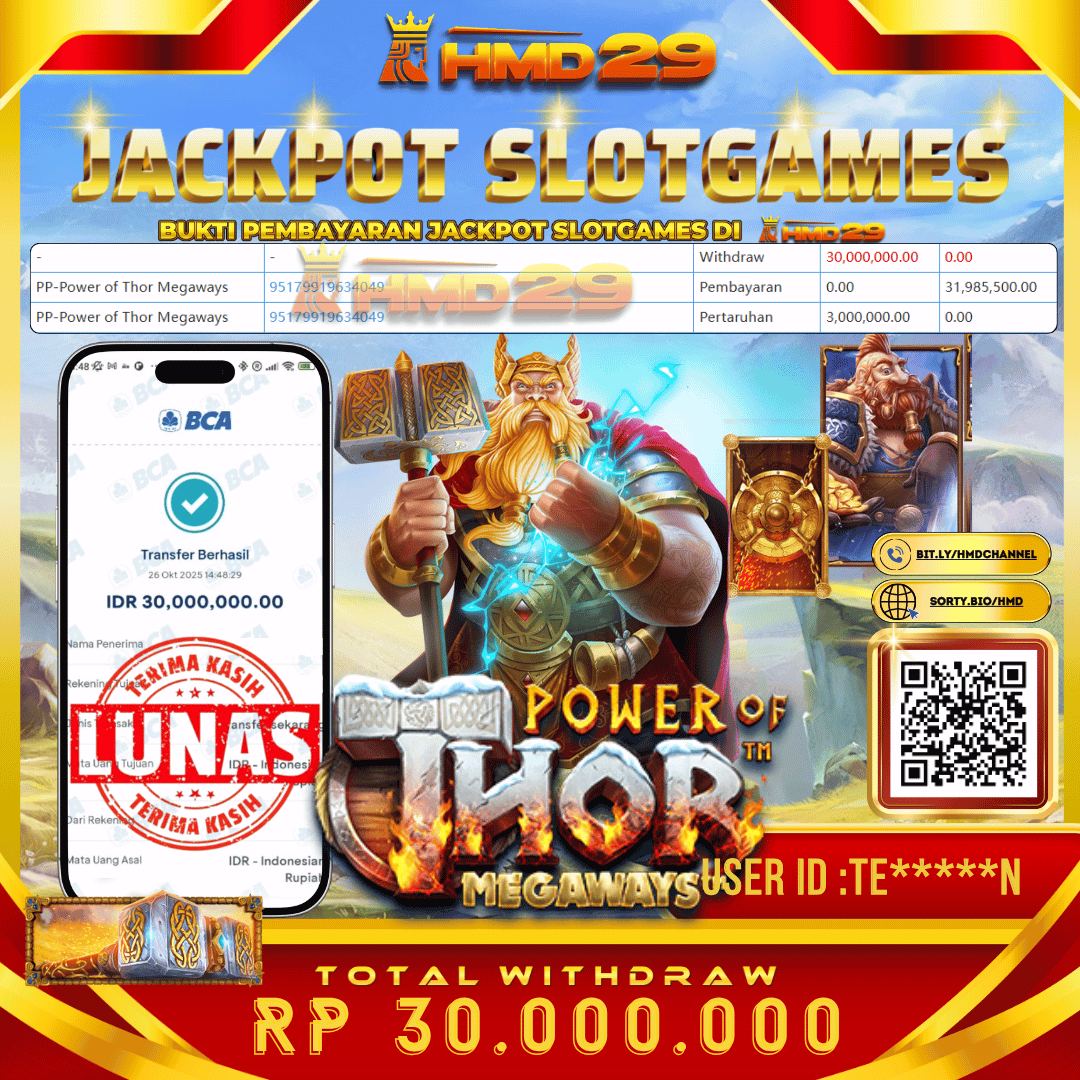 HMD29 JACKPOT SLOT POWER OF THOR MEGAWAYS RP 30,000,000 ,-
