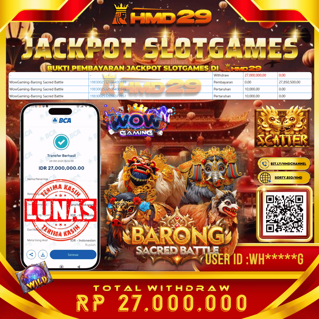HMD29 JACKPOT SLOT BARONG SACRED BATTLE RP 27,000,000 ,-