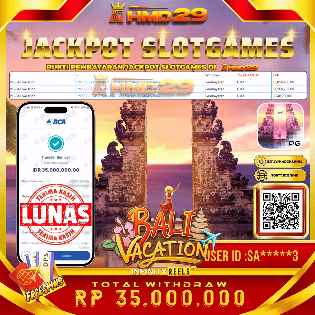 HMD29 JACKPOT SLOT BALI VACATION RP 35,000,000 ,-