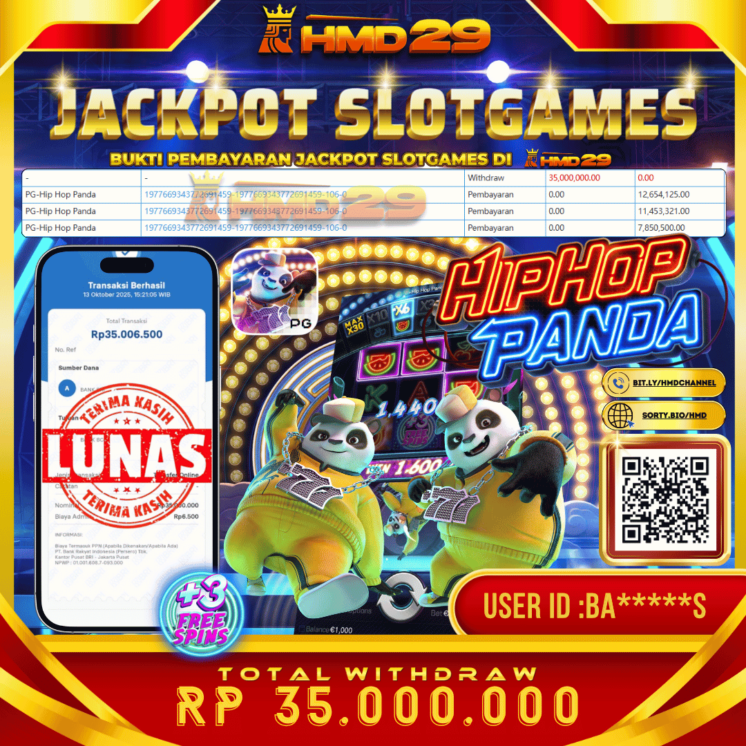 HMD29 JACKPOT SLOT HIP HOP PANDA RP 35,000,000 ,-