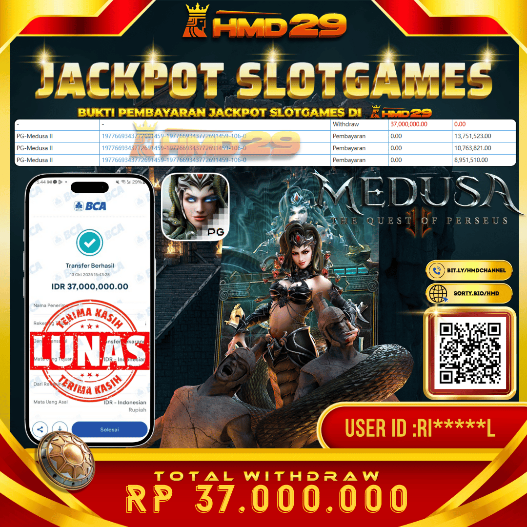 HMD29 JACKPOT SLOT MEDUSA II RP 37,000,000 ,-