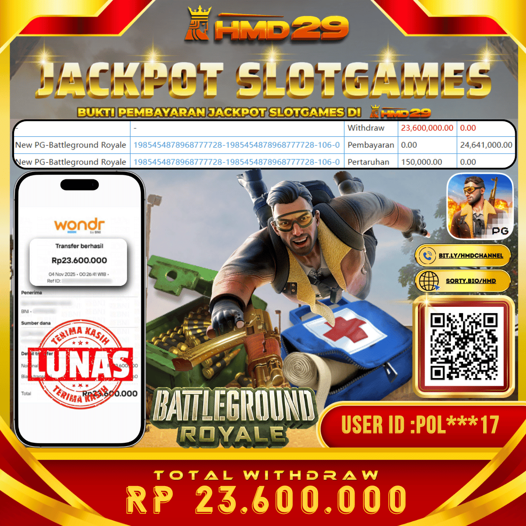 HMD29 JACKPOT SLOT BATTLEGROUND ROYALE RP 23,600,000,-