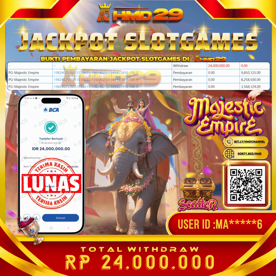 HMD29 JACKPOT SLOT MAJESTIC EMPIRE RP 24,000,000 ,-