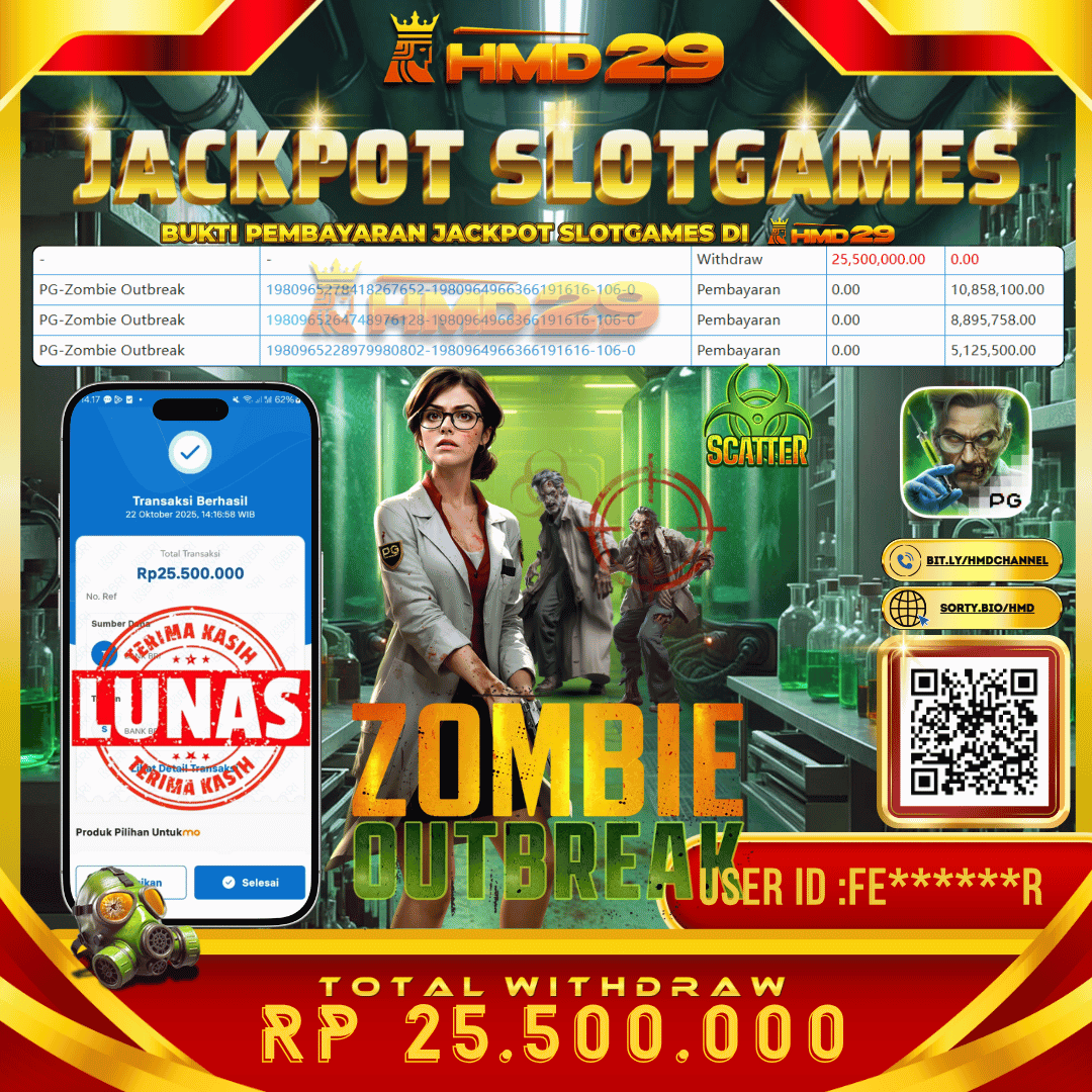 HMD29 JACKPOT SLOT ZOMBIE OUTBREAK RP 25,500,000 ,-