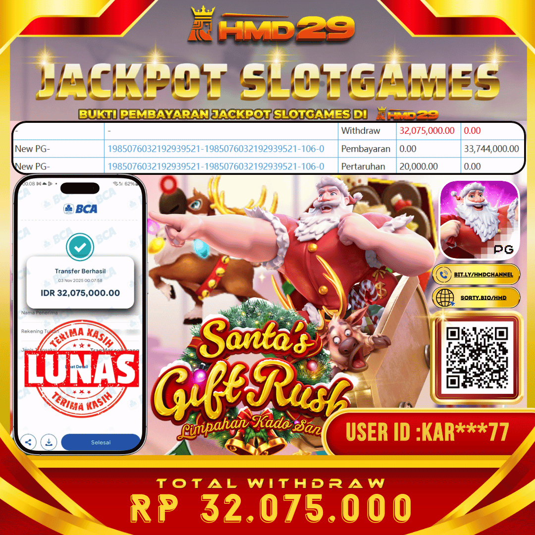 HMD29 JACKPOT SLOT SANTA'S GIFT RUSH RP 32,075,000,-