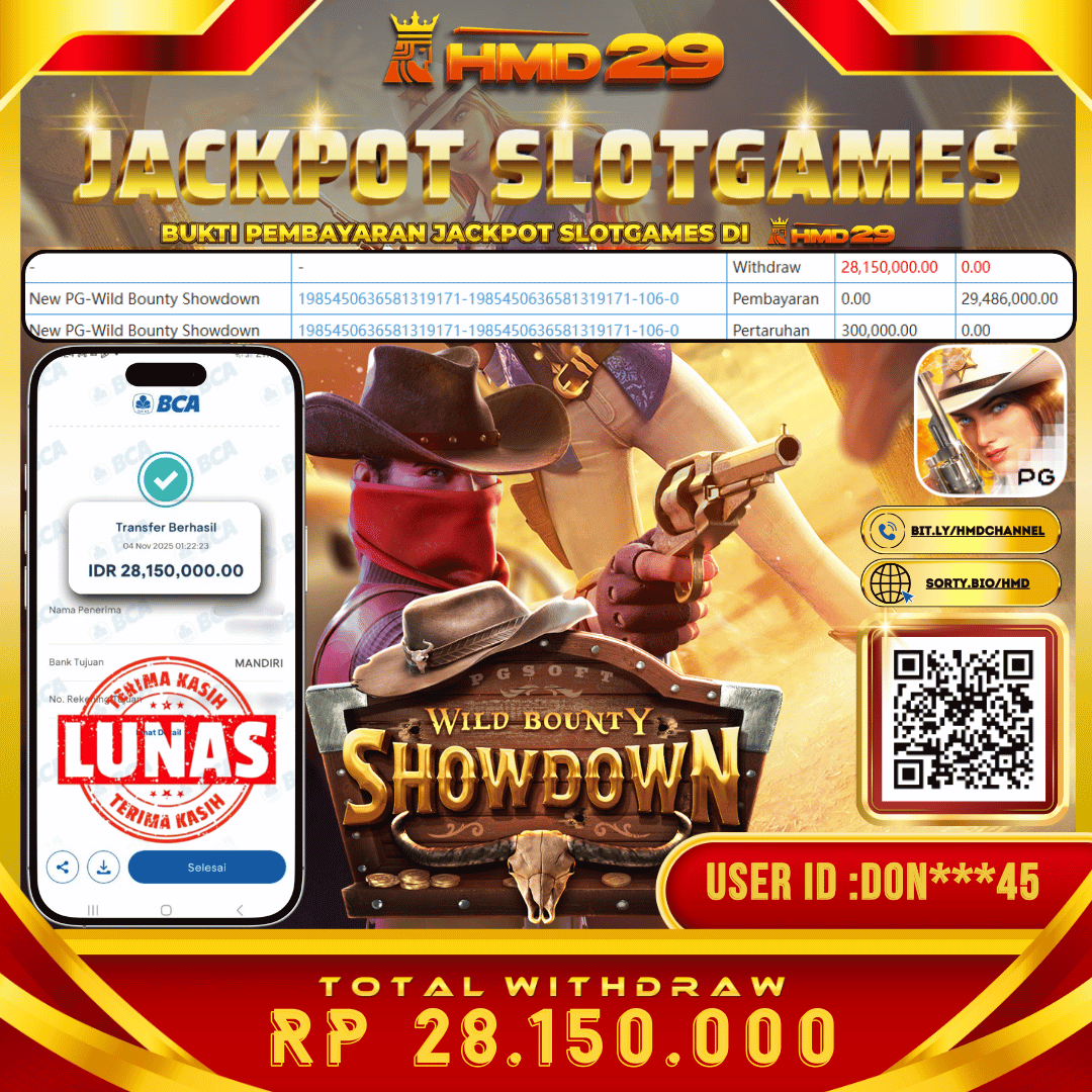 HMD29 JACKPOT SLOT WILDBOUNTY SHOWDOWN RP 28,150,000,-