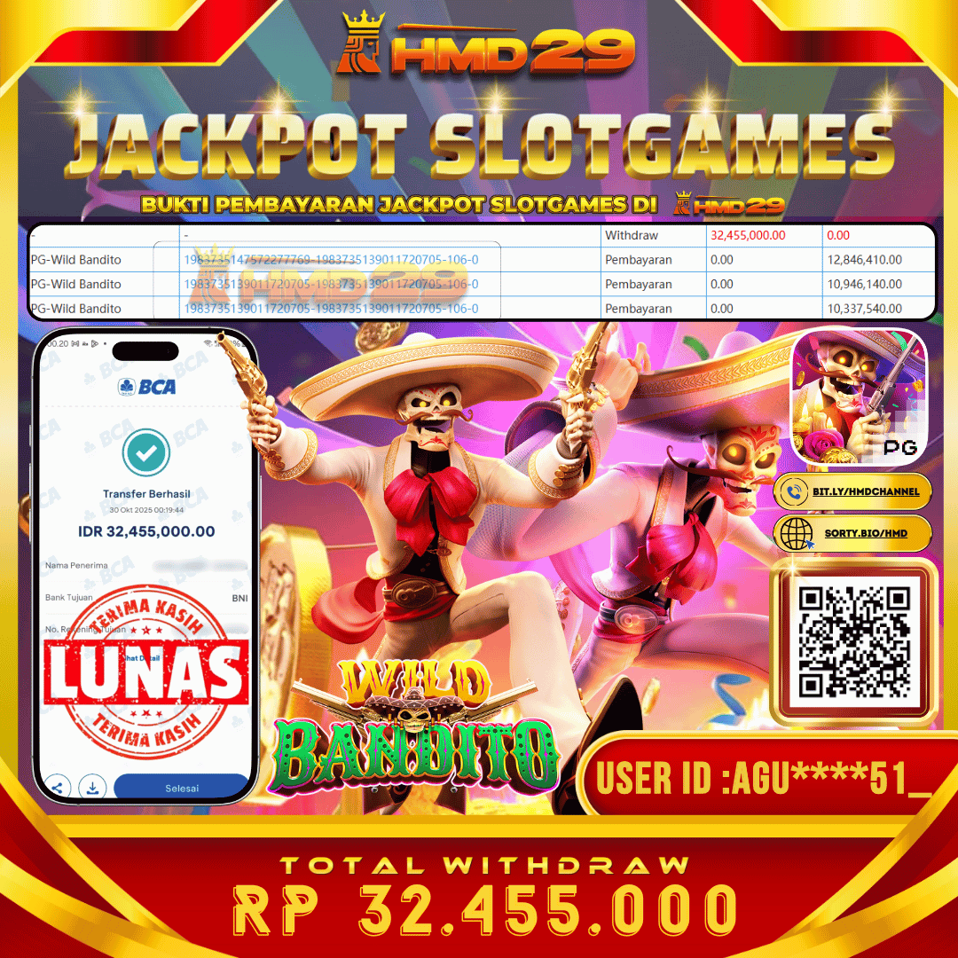 HMD29 JACKPOT SLOT WILD BANDITO RP 32,455,000,-