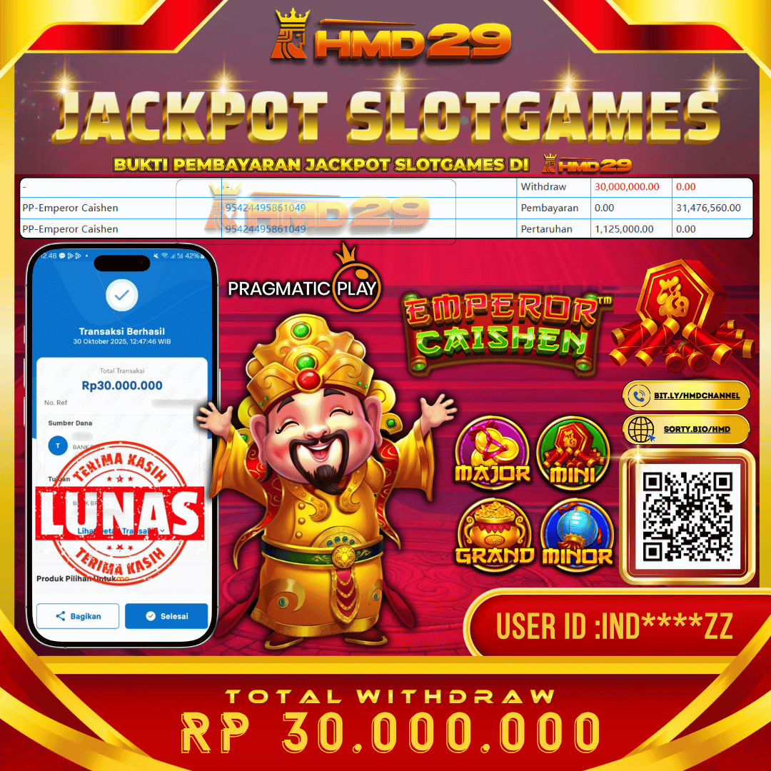 HMD29 JACKPOT SLOT EMPEROR CAISHEN RP 30,000,000,-