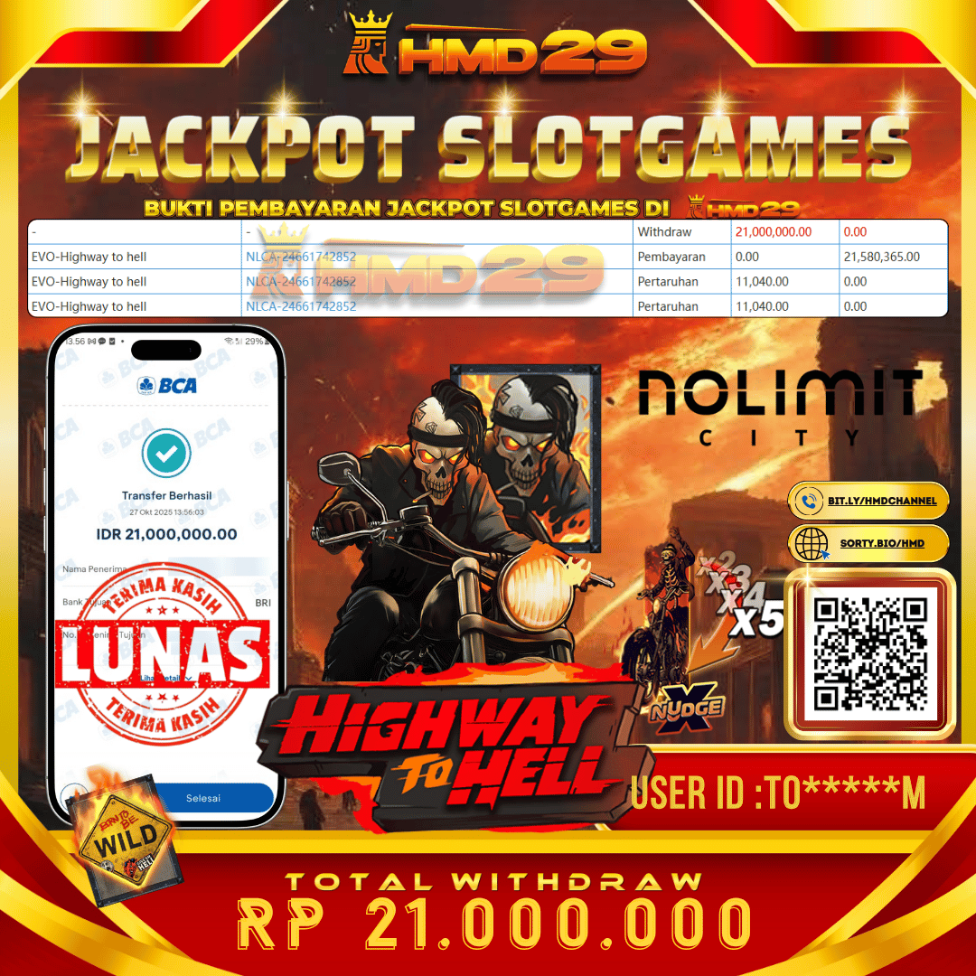 HMD29 JACKPOT SLOT HIGWAY TO HELL RP 21,000,000 ,-