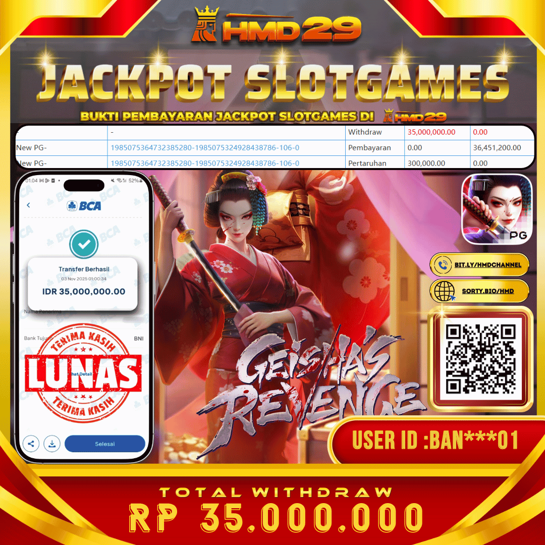 HMD29 JACKPOT SLOT GEISHA REVENGE RP 35,000,000,-