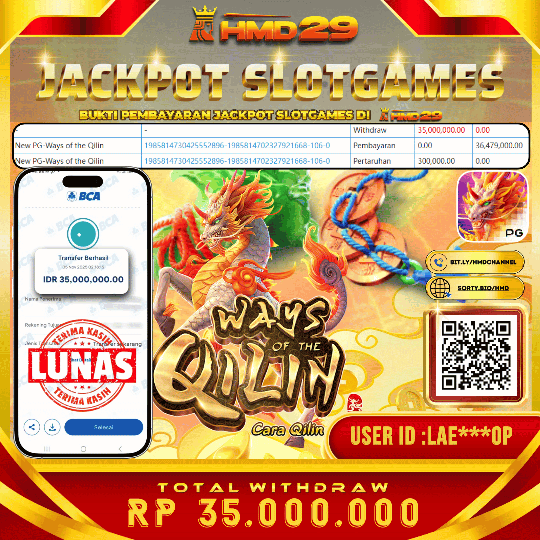 HMD29 JACKPOT SLOT WAYS OF THE QILIN RP 35,000,000,-