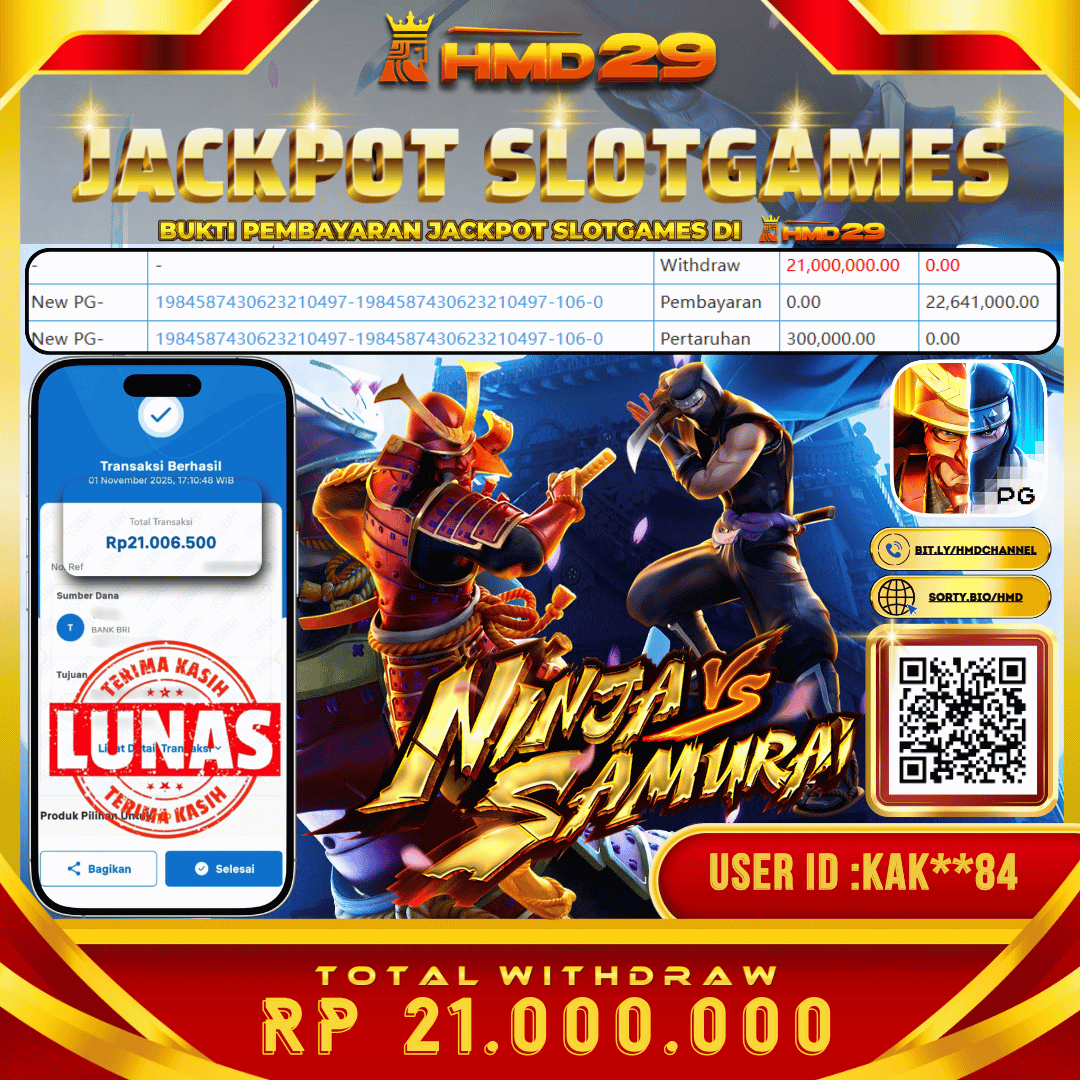 HMD29 JACKPOT SLOT NINJA VS SAMURAI RP 21,000,000,-