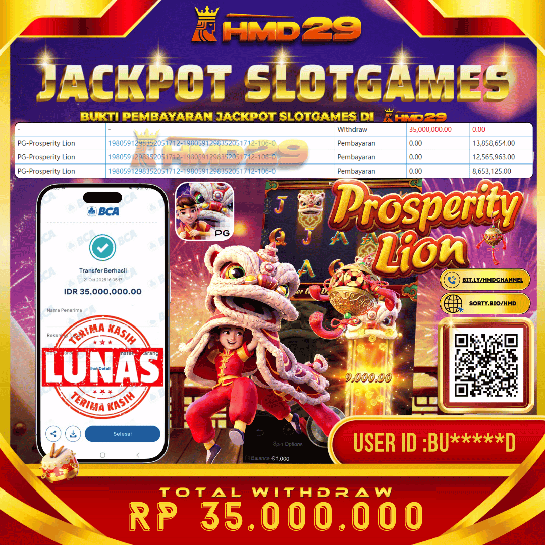 HMD29 JACKPOT SLOT PROSPERITY LION RP 35,000,000 ,-