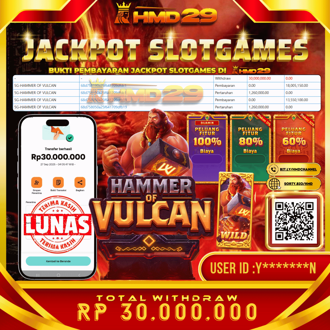 HMD29 JACKPOT SLOT HAMMER OF VULCAN RP 30,000,000 ,- LUNAS