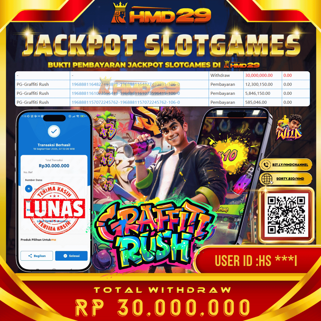 HMD29 JACKPOT SLOTGAME PG-GRAFITI RUSH RP 30,000,000 ,- LUNAS