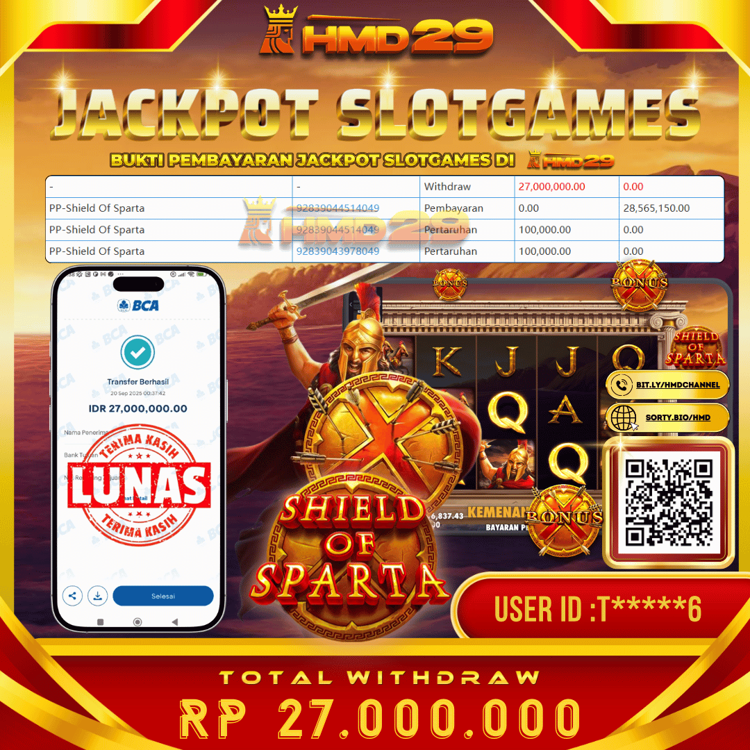 HMD29 JACKPOT SLOT PP-SHIELD OF SPARTA RP 27,000,000 ,- LUNAS