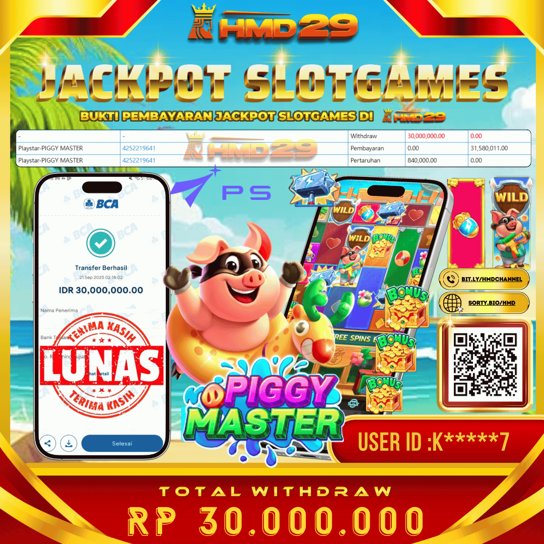 HMD29 JACKPOT SLOT PIGGY MASTER RP 30,000,000 ,- LUNAS