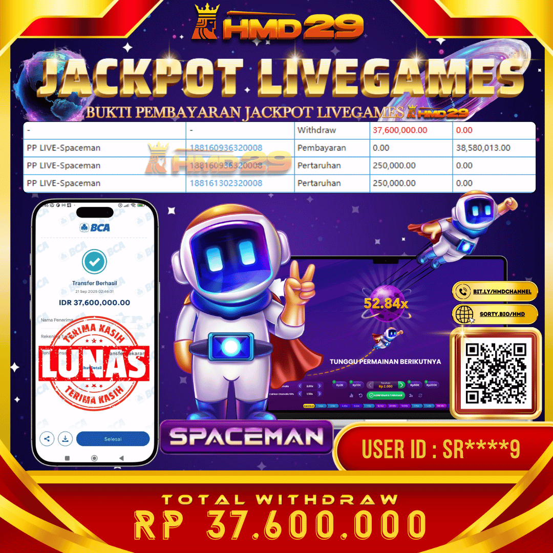 HMD29 JACKPOT LIVEGAME SPACEMAN RP 37,600,000 ,- LUNAS