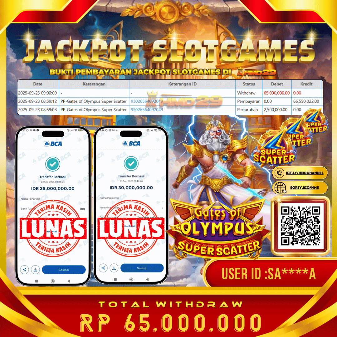 HMD29 JACKPOT SLOT PP-GATES OLYMPUS SUPER SCATER RP 65,000,000 ,- LUNAS