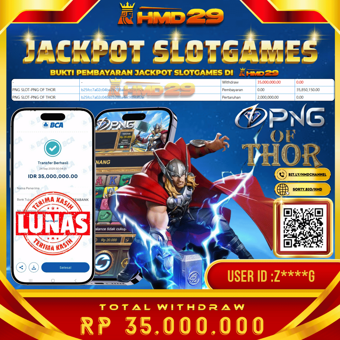HMD29 JACKPOT SLOT PNG OF THOR RP 35,000,000 ,- LUNAS