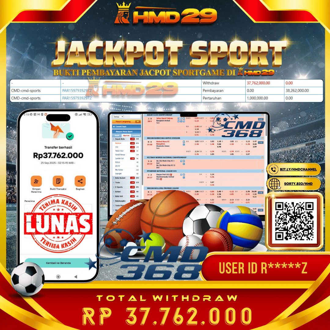 HMD29 JACKPOT SPORT CMD368 RP 37,762,000 ,- LUNAS