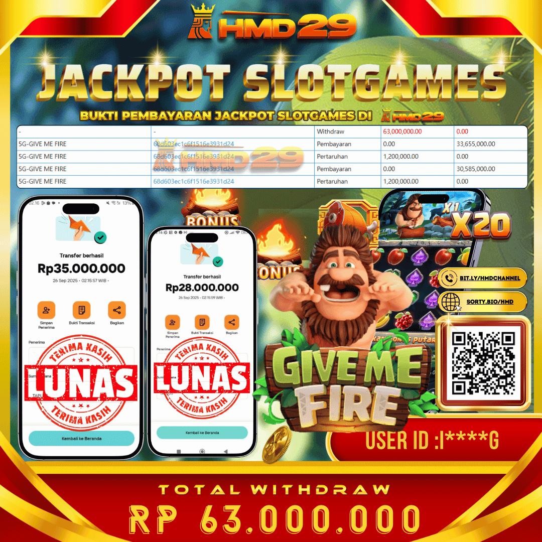 HMD29 JACKPOT SLOT GIVE ME FIRE RP 63,000,000 ,- LUNAS