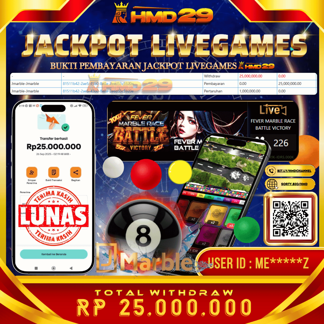 HMD29 JACKPOT LIVEGAME J MARBLE RP 25,000,000 ,- LUNAS
