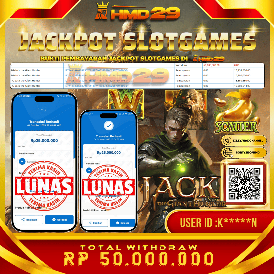 HMD29 JACKPOT SLOT JACK THE GIANT HUNTER RP 50,000,000 ,- LUNAS