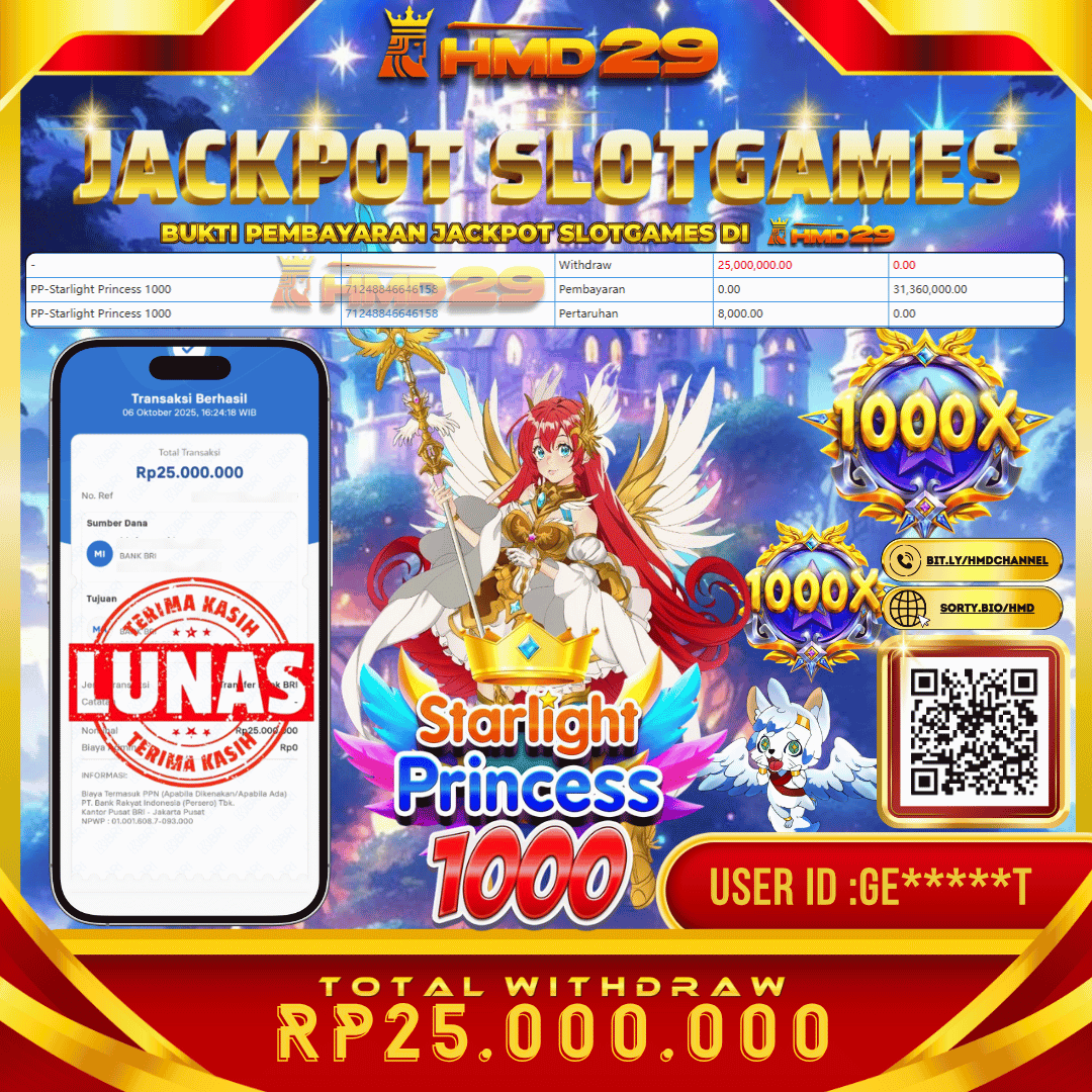 HMD29 JACKPOT SLOT STARLIGHT PRINCESS 1000 RP 25,000,000 ,-