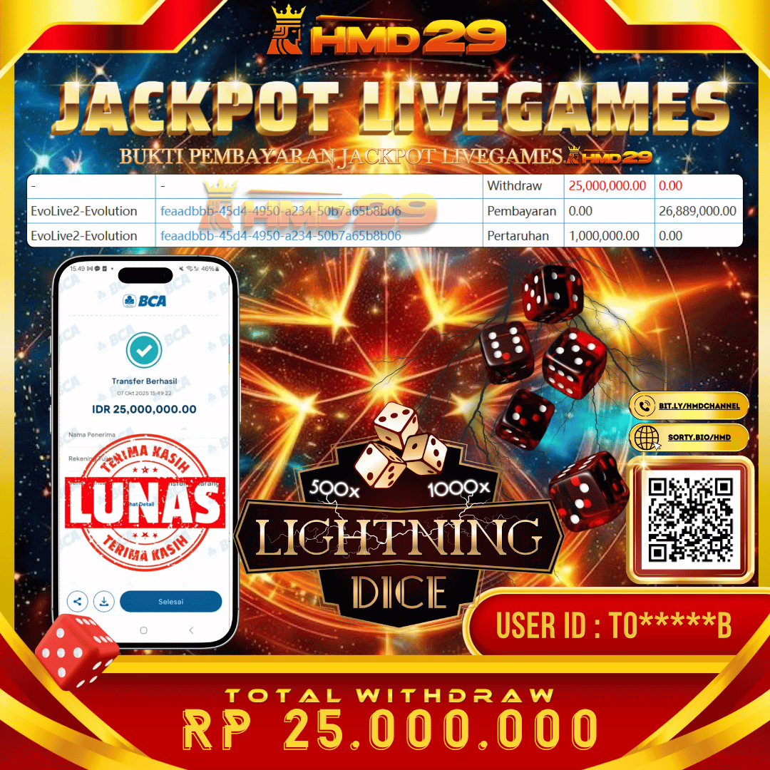 HMD29 JACKPOT LIVEGAME LIGHTNING DICE RP 25,000,000 ,-