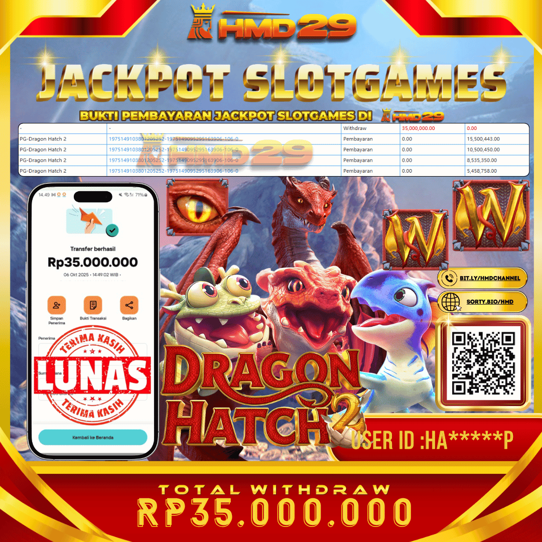 HMD29 JACKPOT SLOT DRAGON HATCH 2 RP 35,000,000 ,-